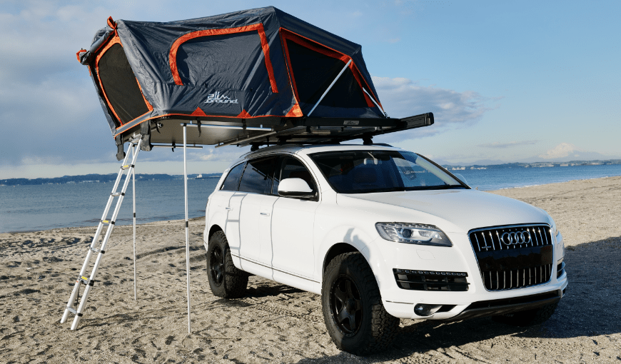 Allgroundのルーフトップテントはハードシェルケースを採用しております。ハードシェルにすることでスタイリッシュな見た目と強度が確保されます。設営は数分で終わりますので、キャンプ時間を思う存分楽しむことが可能となります。